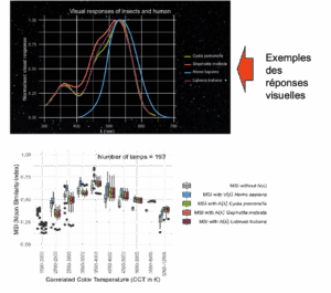 L&M propose d’utiliser une méthodologie qui combine les réponses visuelles des insectes avec le formalisme mathématique de la radiométrie classique afin de quantifier « l’attractivité » de lumière pour les insectes.
