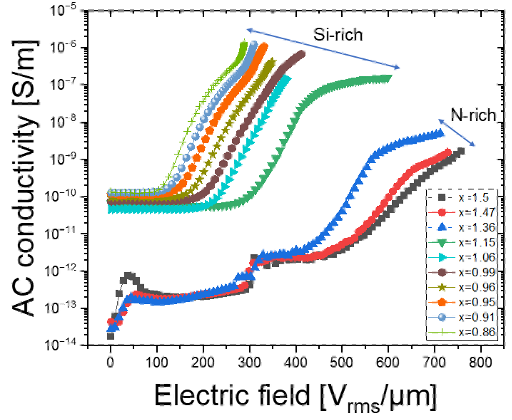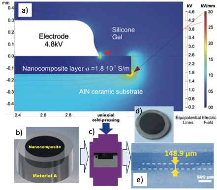 Des études de caractérisation et/ou modélisation multi-contraintes (électrique, thermique, mécanique et environnementales) sont menées pour comprendre les mécanismes de polarisation diélectrique, conduction électrique et conduction thermique des matériaux polymères (PI, époxy, PEI, PAI, parylènes, silicones) et céramiques (AlN, Al2O3, Si3N4).